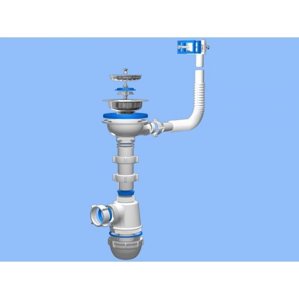 Сифон на мойку с переливом и евро выпуском для мойки М-02 Santehplast