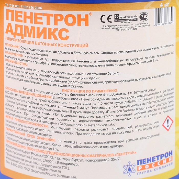 Описание материала Пенетрон Адмикс: Сухая смесь Пенетрон Адмикс состоит из специального цемента и запатентованных химических добавок.