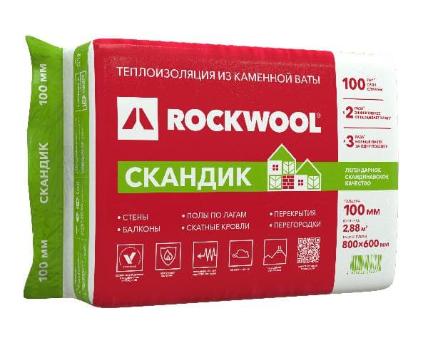 Утеплитель Роквул (Rockwool) Лайт Баттс СКАНДИК (100мм) 2,88 м2 0,288 м3