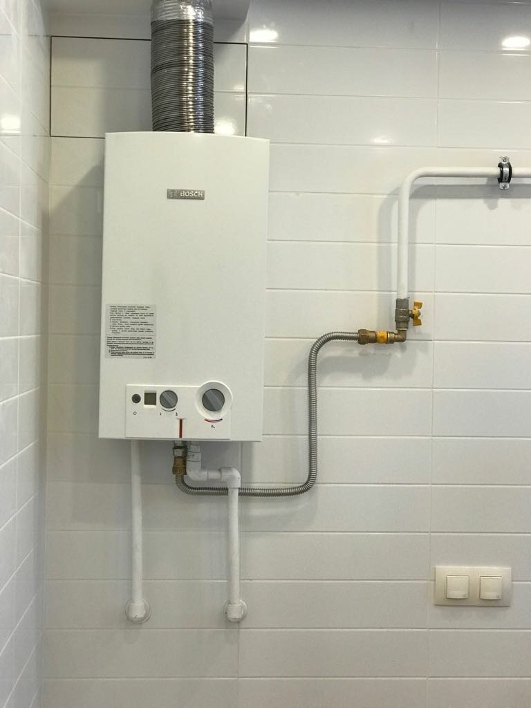 Из написанного выше, Вы уже поняли что самостоятельно устанавливать газовую колонку нельзя, Вы можете (и то после получения план-проекта), подвести воду к колонке и подсоединить колонку к дымоходу.