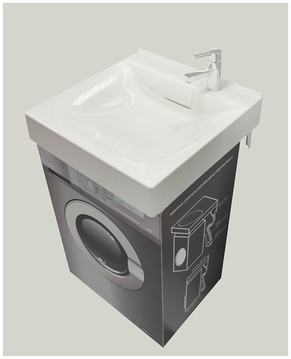 Нельзя устанавливать обыкновенный умывальник над машинкой: это малопрактично и опасно. Крупные компании по выпуску бытовой техники и санфаянса производят комплекты, которые отлично гармонируют друг с другом, не вызывают трудностей при монтаже, не тратят время пользователя на поиск всех необходимых деталей. Если такую комплектацию найти не удалось, придётся формировать «пару» вручную.