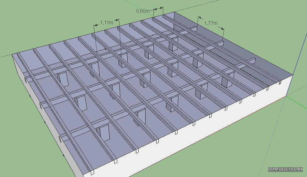Для сооружения прочного и надежного перекрытия выполняются расчеты для определения параметров конструкции. Цель расчета — определение оптимального соотношения размера сечения балок и расстояния между ними в конструкции. Это делается, чтобы избежать «играющих» перекрытий.