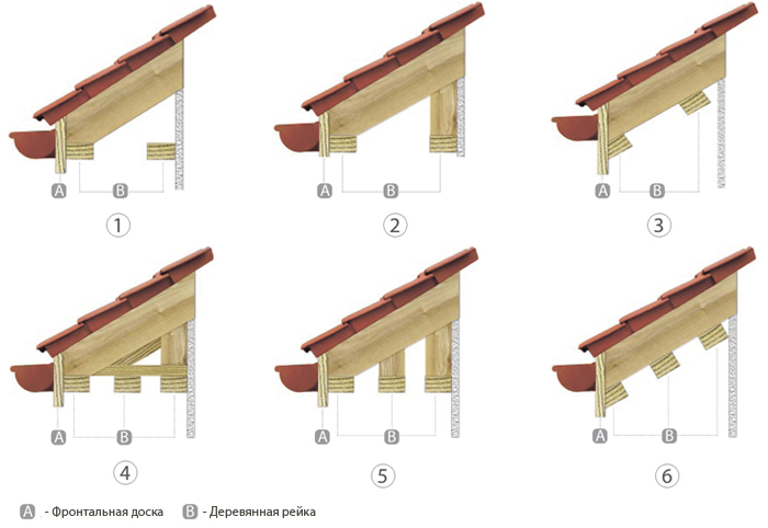 Подшивка карнизного свеса может осуществляться по следующим вариантам: