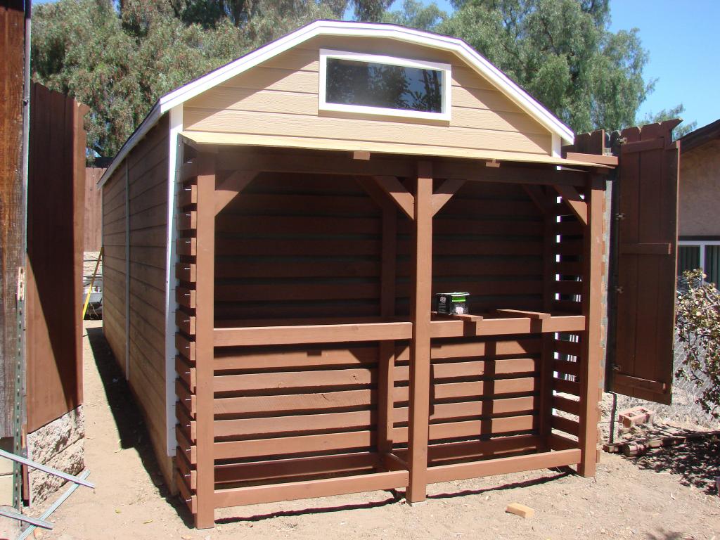 Мне нравится, что этот двухсторонний навес для поддонов полностью закончен и обшит виниловым сайдингом. Также есть готовый пол и раздвижная дверь!