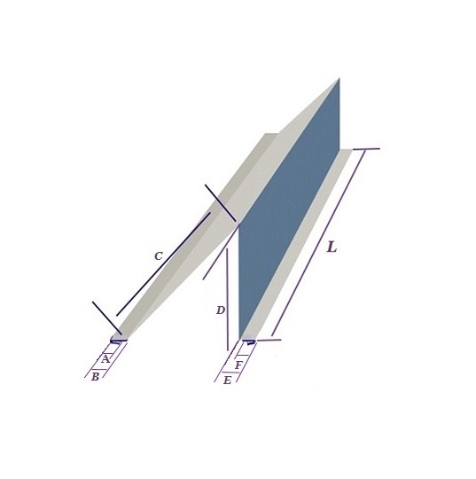 По своей технической конструкции планка снегобарьера длиной 2 метра может быть изготовление с такими размерами —