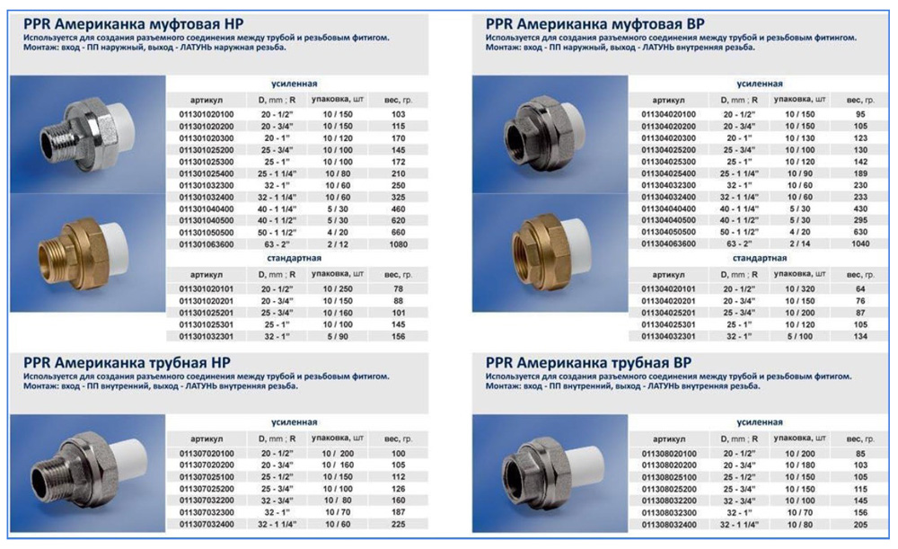 Американки с резиновой прокладкой, требуют замены прокладки при демонтаже и повторной сборке.