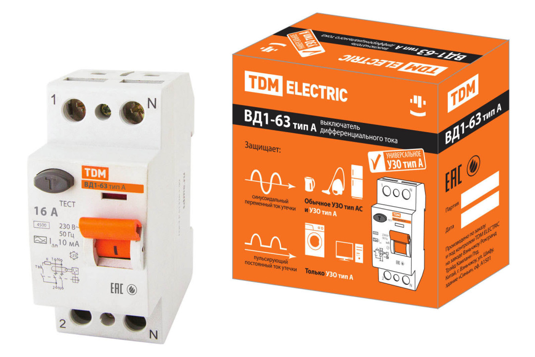 Устройство защитного отключения типа «А» срабатывает при утечках как переменного синусоидального тока, так и утечках пульсирующего постоянного тока.