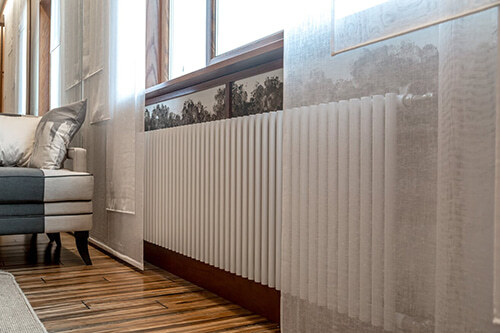 В загородных домах такая конфигурация станет удачным дополнением интерьера. Радиаторы отличаются быстрой реакцией при управлении и легко достигают заданной температуры.