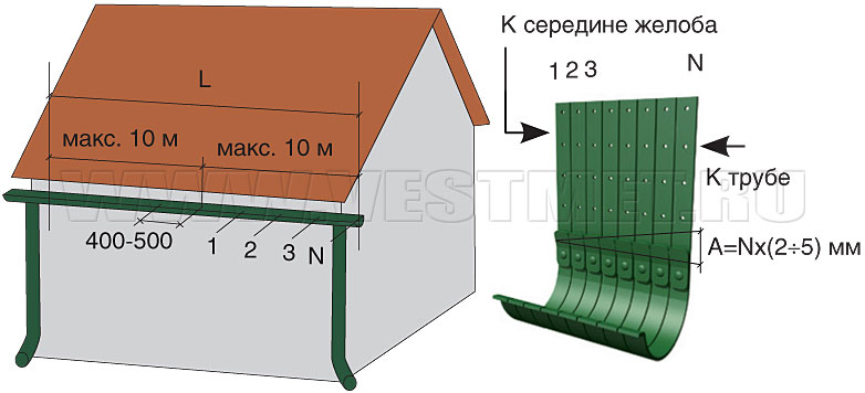- Желоб водосточный: размеры, уклон водостока по ГОСТу и элементы системы