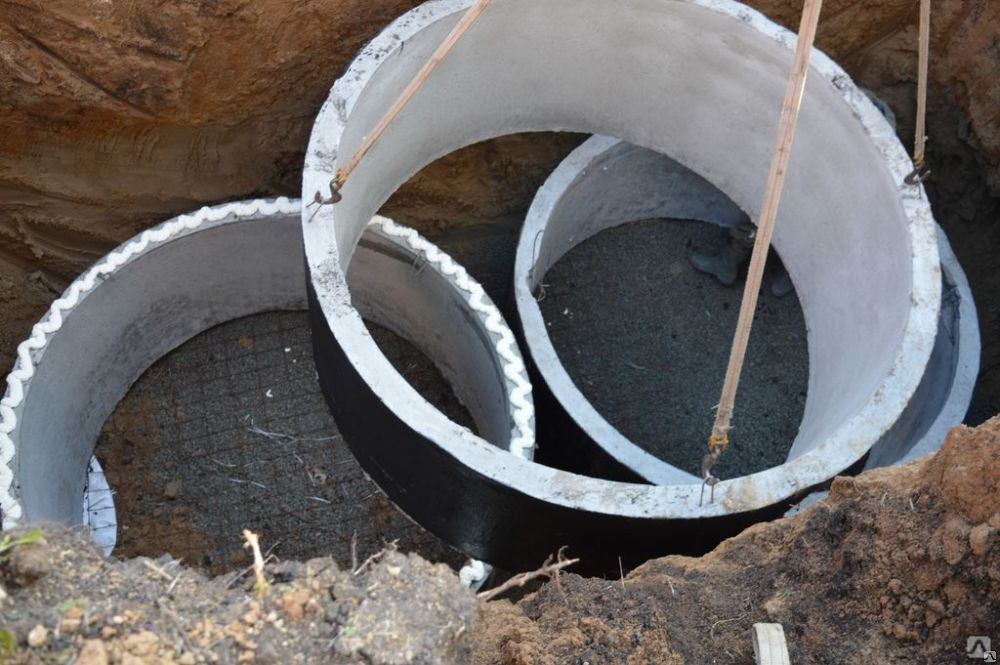 В подготовленные ямы аккуратно опускаются ЖБИ кольца. В нижней части приемного колодца обустраивается железобетонное дно. Внизу второго и третьего колодцев подготавливаются дренажные слои. Самая сложная часть — погрузка монолитных железобетонных колец, для этой операции может привлекаться спецтехника с манипулятором. Использование спецтехники повышает стоимость монтажных работ, однако обеспечивает высокую скорость и точность. Кроме того, это наиболее безопасный способ установки ЖБИ изделий.