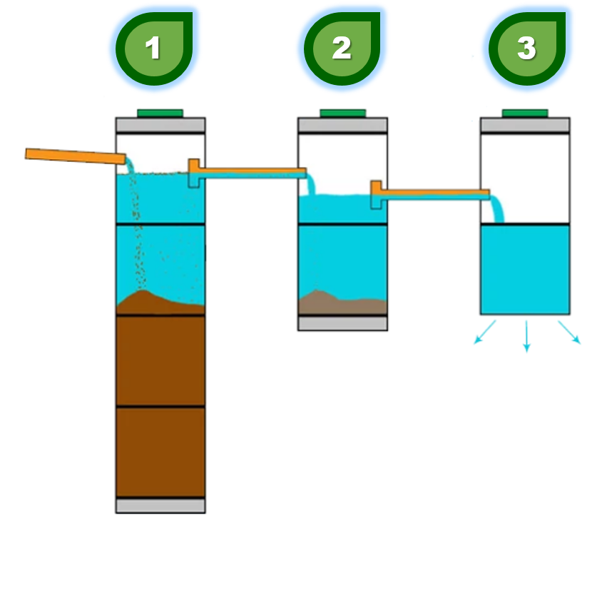 - вторая скважина, подключенная к первому переливу, обеспечивает другой уровень фильтрации.Также он имеет герметичную стенку и дно.