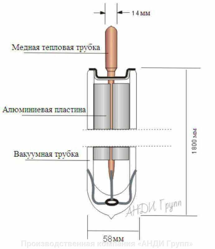Медная вакуумная трубка, которая передает тепло изнутри ET к коллектору.