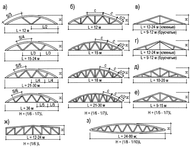 В настоящее время унифицированы геометрические схемы стропильных ферм производственных зданий (18, 24, 30, 36 м), мостов, радиомачт, радиобашен, опор ЛЭП.