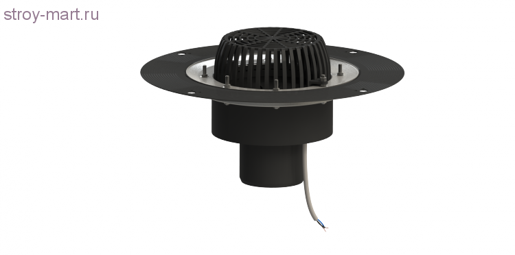 - С подогревом. Воронка для плоской кровли оборудуется тепловым кабелем, благодаря которому в зимний период осуществляется его подогрев, соответственно предупреждается образование наледи, и талая вода свободно уходит вниз по водосточной системе.