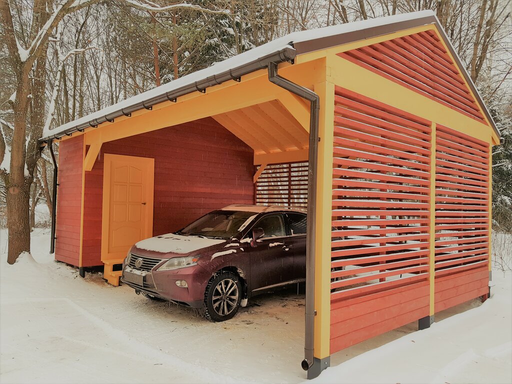 Парковка для авто с кровлей из профнастила