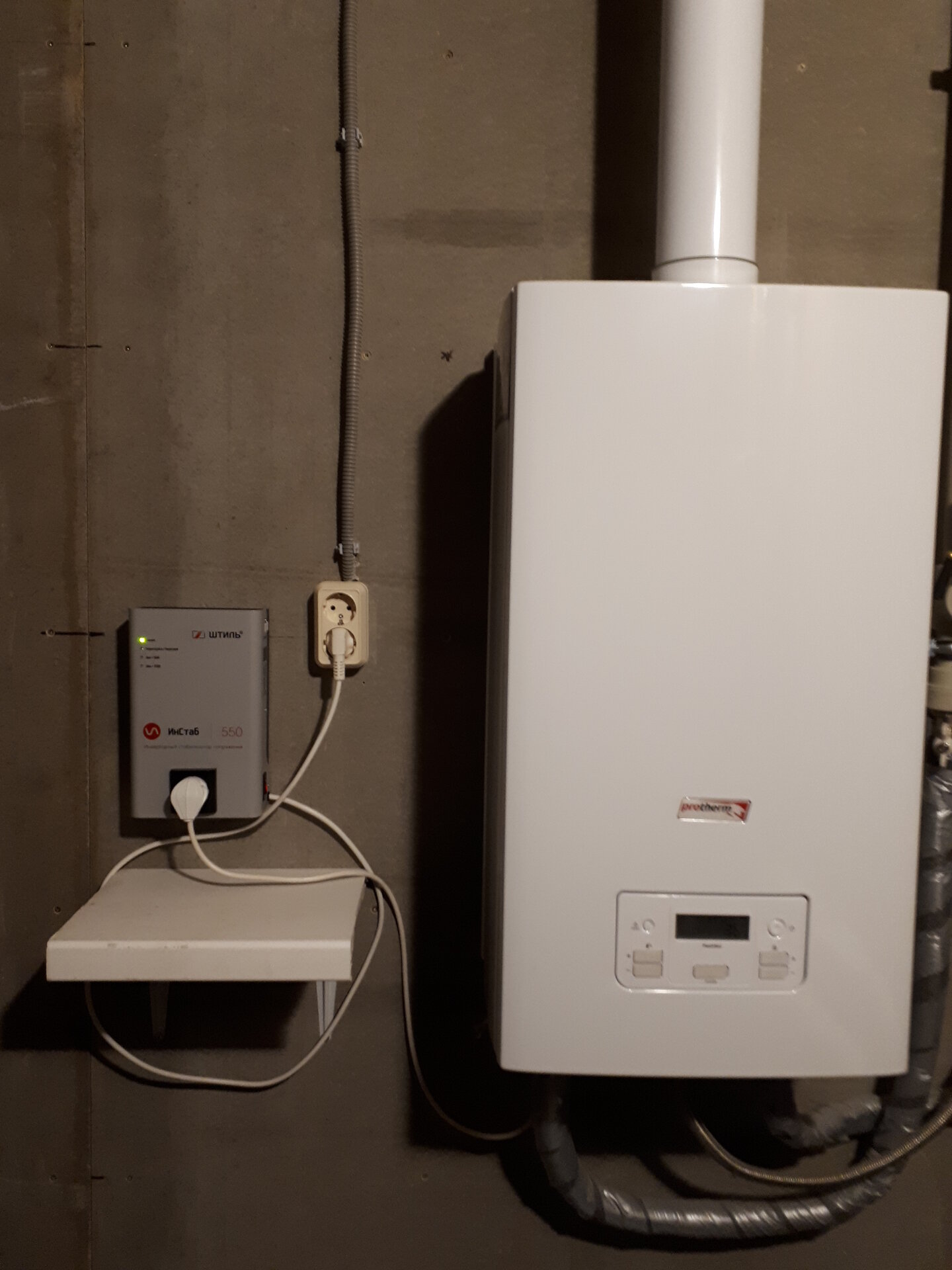 Стандартное использование стабилизатора напряжения (он слева) с газовым настенным котлом Italtherm