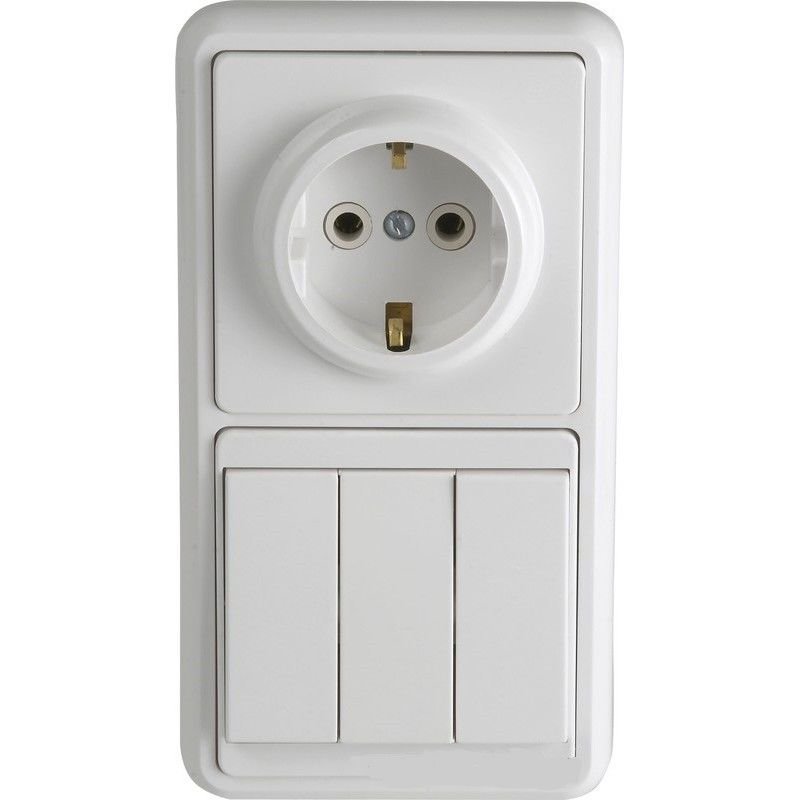 Вставить тройной выключатель с розеткой в один корпус можно практически на любых поверхностях, будь то пеноблок, гипсокартон, камень или кирпич.Установка таких устройств возможна как внутри, так и снаружи здания. Для наружной установки рекомендуется использовать модели с предусмотренной защитой от влаги.