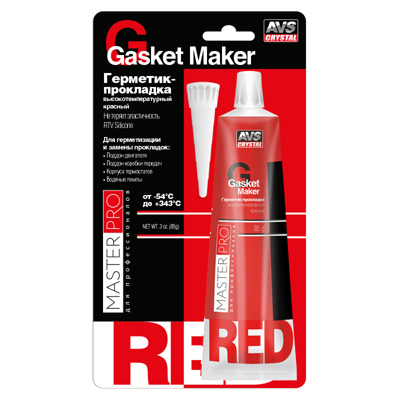 Выдерживает постоянное воздействие 280°C и кратковременное 300°C. Эта одна часть силиконового клея RTV красного цвета и очень эластичная.