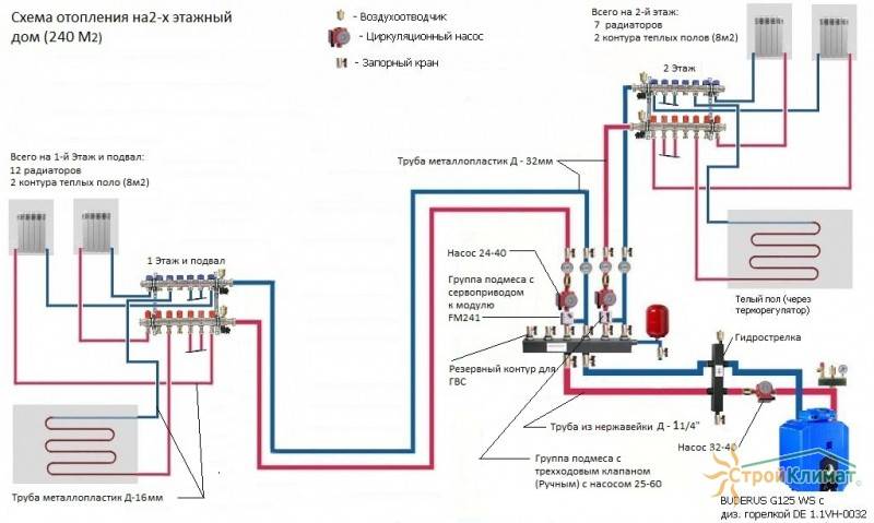 Двухтрубный тип отопления подходит для отопления двухэтажного дома.