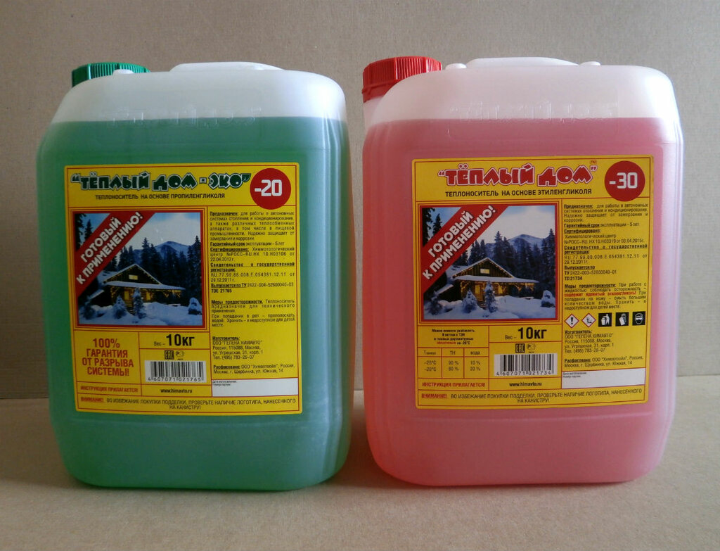 Важно! Составы незамерзающих гликолевых и глицериновых теплоносителей для СО известны, но делать их своими достаточно сложно из-за проблем с правильной дозировкой и подбором необходимых присадок. Несоблюдение пропорций и технологии производства за собой нагревание при нагреве «незамерзайки» и уменьшение теплоотдачи самодельного теплоносителя.