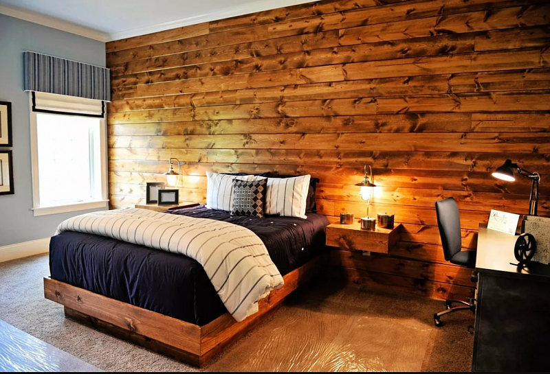 Раз уж речь зашла о тканевых обоях для декора, стоит обратить внимание на шторы. То, что за ними нет окна, не означает, что вы не можете добавить занавеску в свою комнату. Используйте обычный карниз, установленный в верхней части стены.