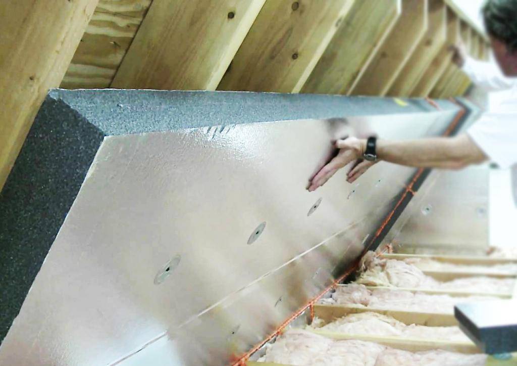 - Обустройство паробарьера, фиксация пленки на балках стропильной системы, проклеивание швов монтажной лентой.