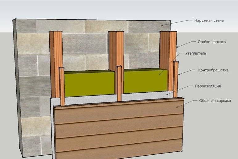 - Вентилируемая. Основное отличие этого способа в том, что между теплоизолятором и непосредственно облицовкой есть воздушная прослойка. Чтобы сформировать подобное сооружение, устанавливается обрешетка, она изготовлена из высококачественного металла или дерева.