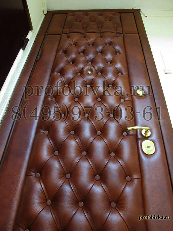 Теплоизоляция не может быть выполнена без декоративной отделки. Обычно утеплитель закрывают искусственной кожей. Фиксируют мебельными гвоздями с широкой декоративной шляпкой. С внутренней стороны полотно обшивают ламинированными МДФ панелями. Красиво выглядит отделка из натуральной кожи, но материал очень дорого стоит.