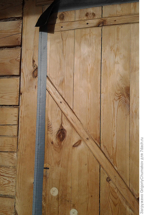 Он выпилил доски нужных размеров (а точнее взял старые, имеющиеся у него материалы и подогнал доски до нужных размеров) и просто плотно приложил их друг другу, а соединил это всё Z- образной структурой, с помощью двух поперечных досок и одной диагональной, о которых я говорил выше, вот и всё!