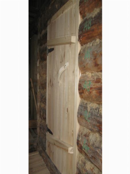 В деревянной бане — самый логичный вариант. Плюсы: экологична, при грамотной подгонке — герметична, обладает способностью деформироваться вместе со срубом, не разрушаясь, обеспечивает прекрасную термоизоляцию, достаточно легко устанавливается. Минусы: без должной обработки подвержена заражению грибком и плесенью. Самостоятельно сделать такую дверь можно, но это довольно сложный процесс, доступный только людям со столярными навыками.