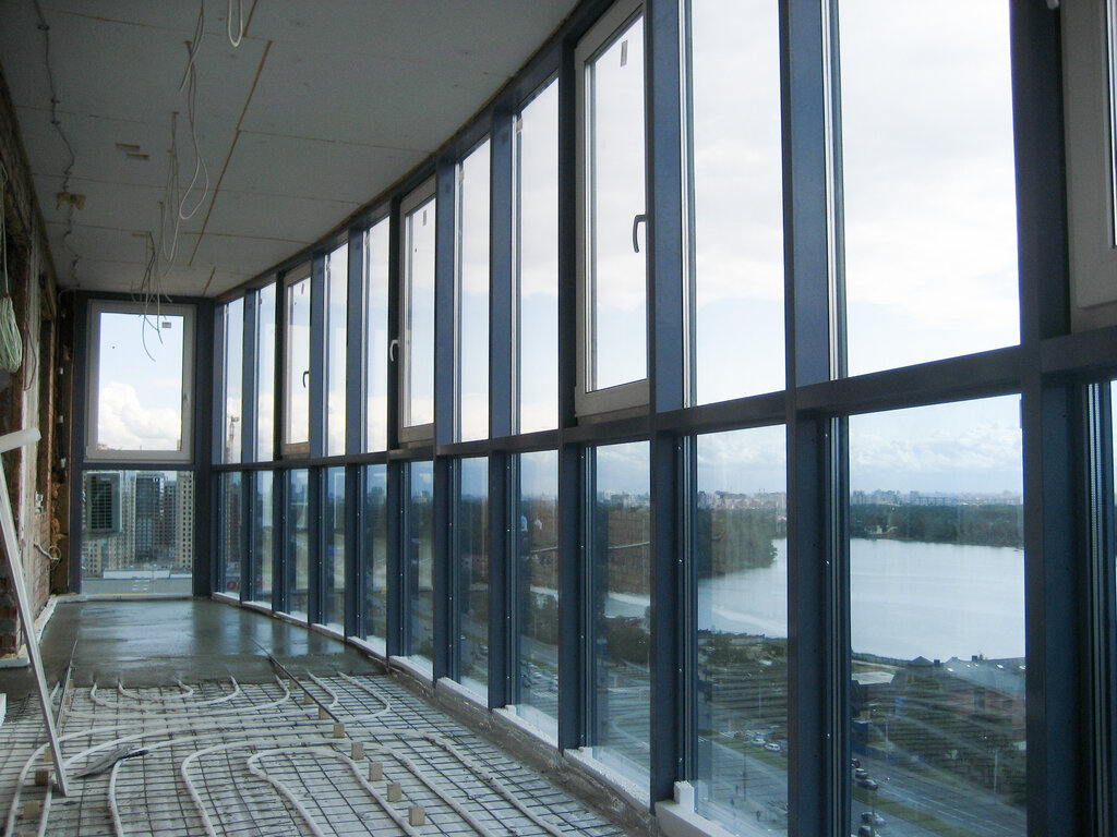 Это увеличит общую поверхность профиля, сквозь который теплый воздух предательски испаряется наружу. Такой вариант считается более сложным. При его использовании не всегда получится смонтировать двухкамерные стеклопакеты (нужно учесть конструктивные особенности балконной плиты и немалый вес окон из металлопластика). Чтобы компенсировать их отсутствие, можно применять систему «теплый пол», вот только об ее монтаже нужно позаботиться до установки окон.