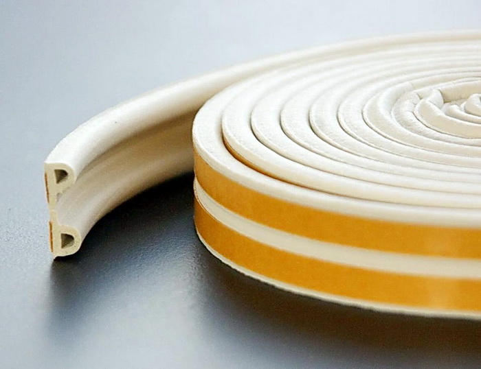 Самоклеющийся ПВХ-уплотнитель известен наивысшими звукоизоляционными качествами. Этот вид прокладок устойчив к воздействию прямых солнечных лучей и действию озона. Он очень долговечный и прочный.