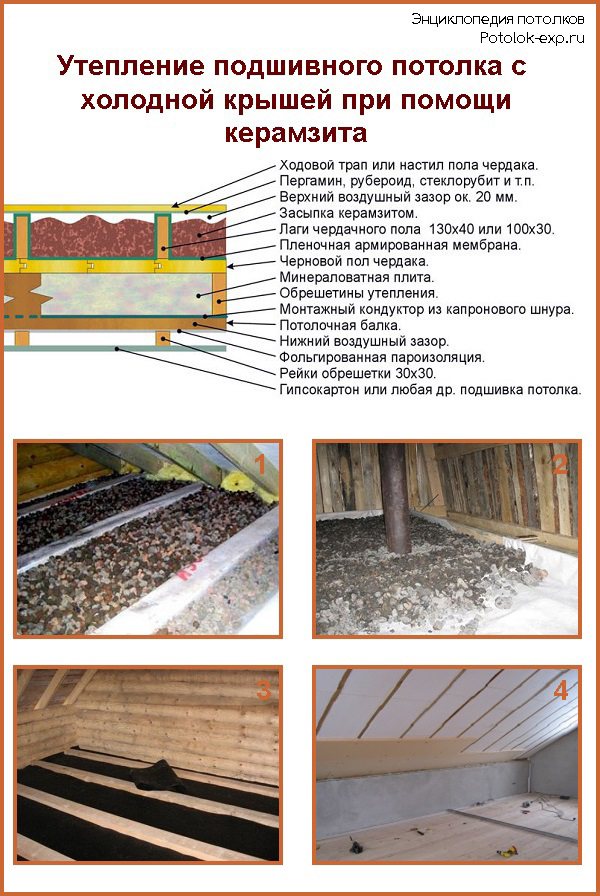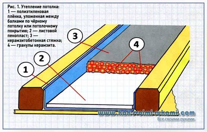 - Как утеплить потолок керамзитом, какая толщина слоя нужна